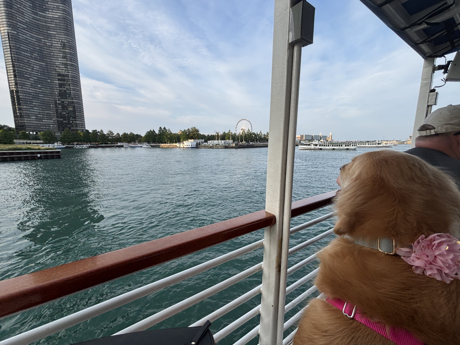 This might have been the highlight of our trip: a dog-friendly architecture river tour with Shoreline Sightseeing! We debated between this and the Seadog tour, but since it was Luna’s first time on a boat, we picked Shoreline’s calmer cruise. The Seadog has a short speedboat ride at the end, so we decided to save that adventure for another day.